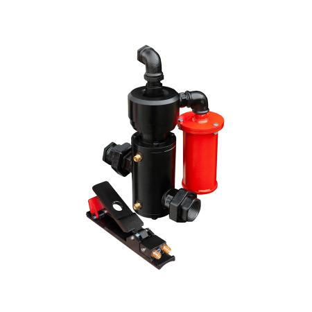 позволяет оператору на расстоянии включать и отключать подачу сжатого воздуха на абразивоструйную установку. Дистанционное управление применяется для управления подачей сжатого воздуха в аппарат с одновременным управлением функцией стравливания воздуха из аппарата. Стравливание воздуха из бака аппарата происходит через глушитель, который входит в комплект поставки.